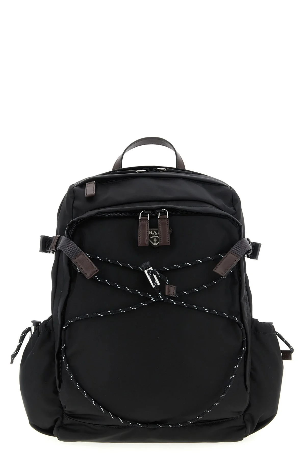 cod. 2VZ122VOOO2DMGF0002 'Prada Speedrock' Re-Nylon backpack with contrasting smooth leather details, multipocket design with triangle enameled metal logo and adjustable technical cord on the front, fixed handle, top zip closure, adjustable shoulder straps, padded mesh fabric backrest. SUSTAINABLE: This product is made with Re-Nylon, a regenerated yarn made from recycled and purified plastic collected in oceans, fishery nets and textile fibers. Color: Black Composition: 100% recycled polyamide Size&Fit: W 29 x H 42 x D 14 cm PROMO CODE NOT APPLICABLE