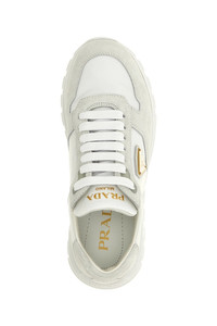 cod. 1E921NF035D7CF0009 'Prax 01' sneakers in Re-Nylon and suede, triangle logo in enameled metal on the side, lace-up closure, rubber sole. SUSTAINABLE: This product is made with Re-Nylon, a regenerated yarn made from recycled and purified plastic collected in oceans, fishery nets and textile fibers. Color: White Size & Fit: EU WOMEN Composition: 100% polyamide Made in: Italy