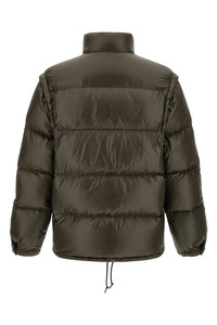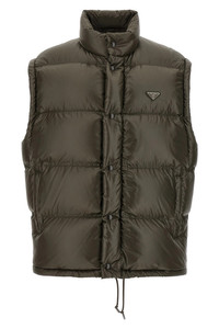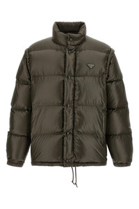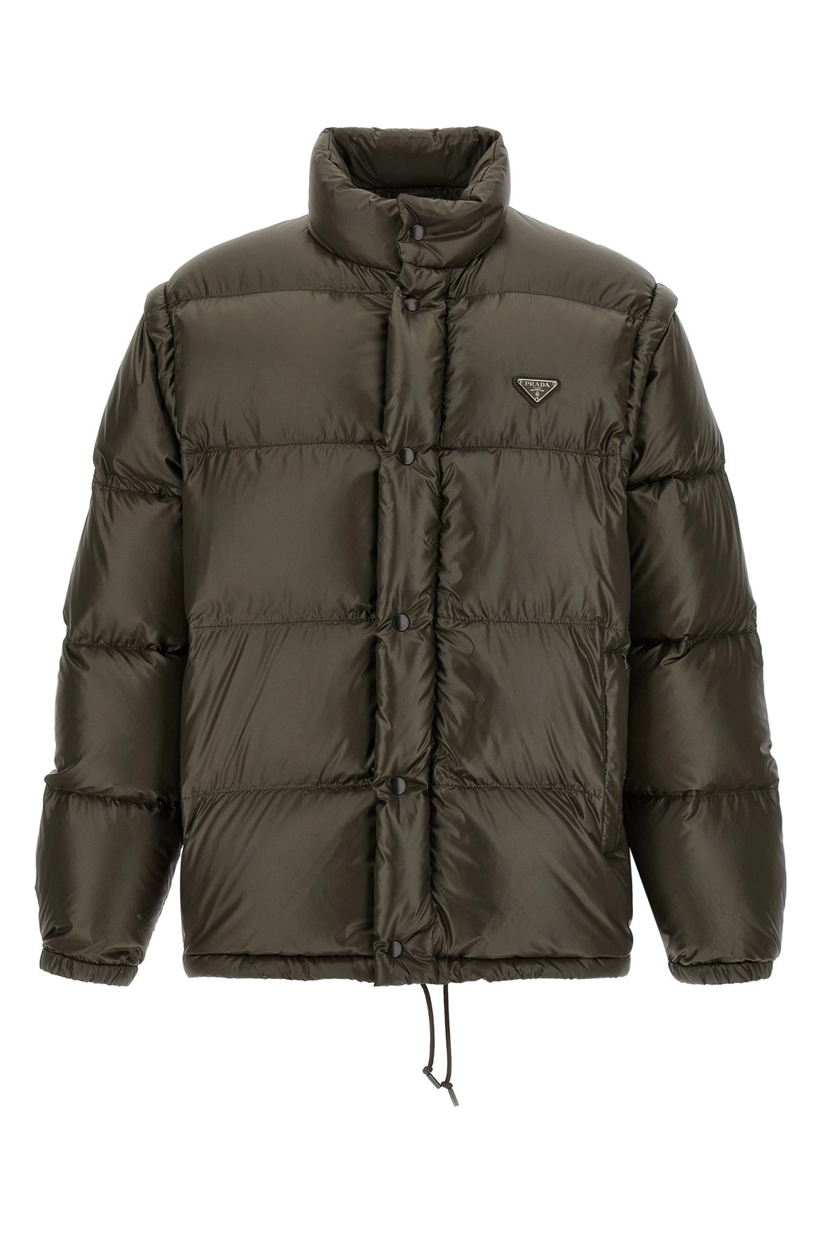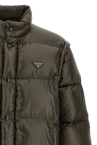 cod. SGC863SOOO17XSF0334 Quilted and goose feather padded Re-Nylon down jacket, front enameled metal triangle logo, standing collar, zip and snap button closure, pockets, long sleeves with removable elastic cuffs, drawstring at the hem. SUSTAINABLE: This product is made with Re-Nylon, a regenerated yarn made from recycled and purified plastic collected in oceans, fishery nets and textile fibers. Color: Gray Size & Fit: oversized fit Composition: 100% recycled polyamide Made in: Italy PROMO CODE NOT APPLICABLE