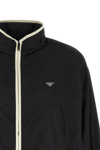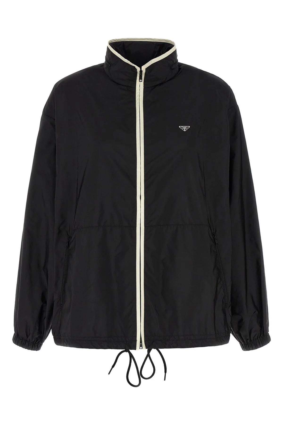 cod. 292321SOOO1WQ9F0Q1I Re-Nylon Piuma anorak with contrast details, triangle logo in enamelled metal and front zip closure, standing collar with removable hood, pockets, long sleeves with elastic cuffs, drawstring on the hem, unlined. SUSTAINABLE: Product made with Re-Nylon, a regenerated yarn made from the recycling and purification of plastic collected in oceans, fishing nets and textile fibers Color: Black Size & Fit: true to size fit Composition: 100% polyamide Made in: Italy PROMO CODE NOT APPLICABLE