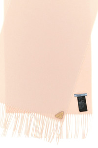 cod. 1FS0652COPF0ORK Silk and cashmere scarf, triangle logo in enameled metal, fringed edges. Color: Pink Composition: 51% silk 49% cachemire Size&Fit: 35 x 170 cm PROMO CODE NOT APPLICABLE