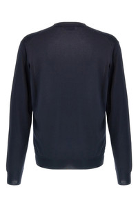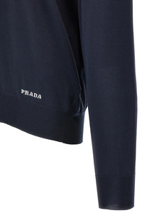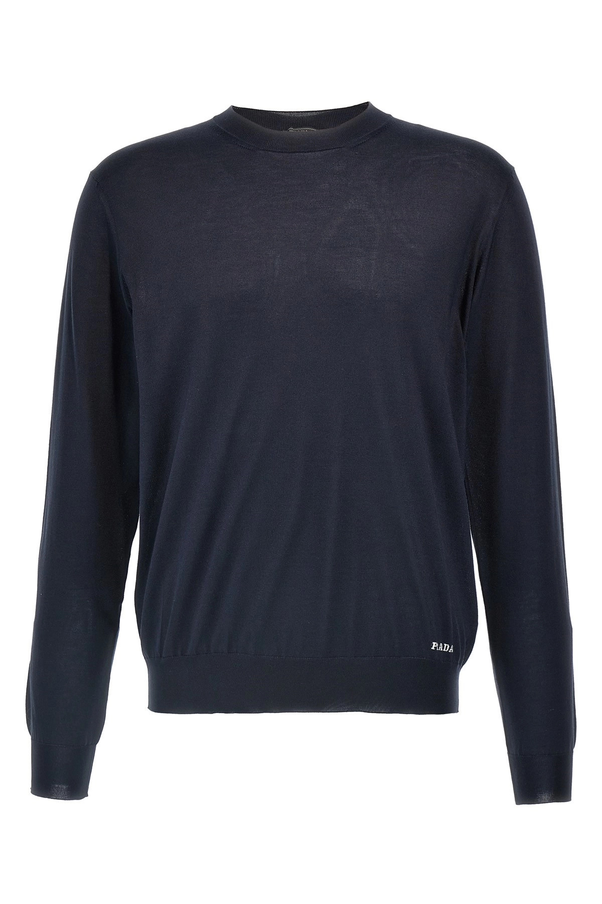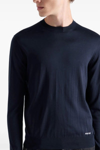 cod. UMB927SOOO16AIF0008 Silk sweater, contrast front logo embroidery, crew neck, long cuffed sleeves. Color: Blue Size & Fit: true to size fit Composition: 100% silk Made in: Italy