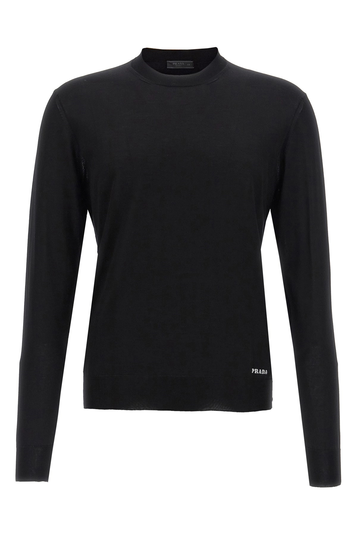 cod. UMB927SOOO16AIF0002 Silk sweater, contrast front logo embroidery, crew neck, long cuffed sleeves. Color: Black Size & Fit: true to size fit Composition: 100% silk Made in: Italy