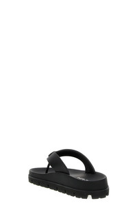 cod. 1Y420NF0203LKKF0002 'Soft Project' rubber thong sandals with triangle metal enamel logo appliqué and rubber sole. Color: Black Size & Fit: EU WOMEN Composition: 100% acetate PROMO CODE NOT APPLICABLE