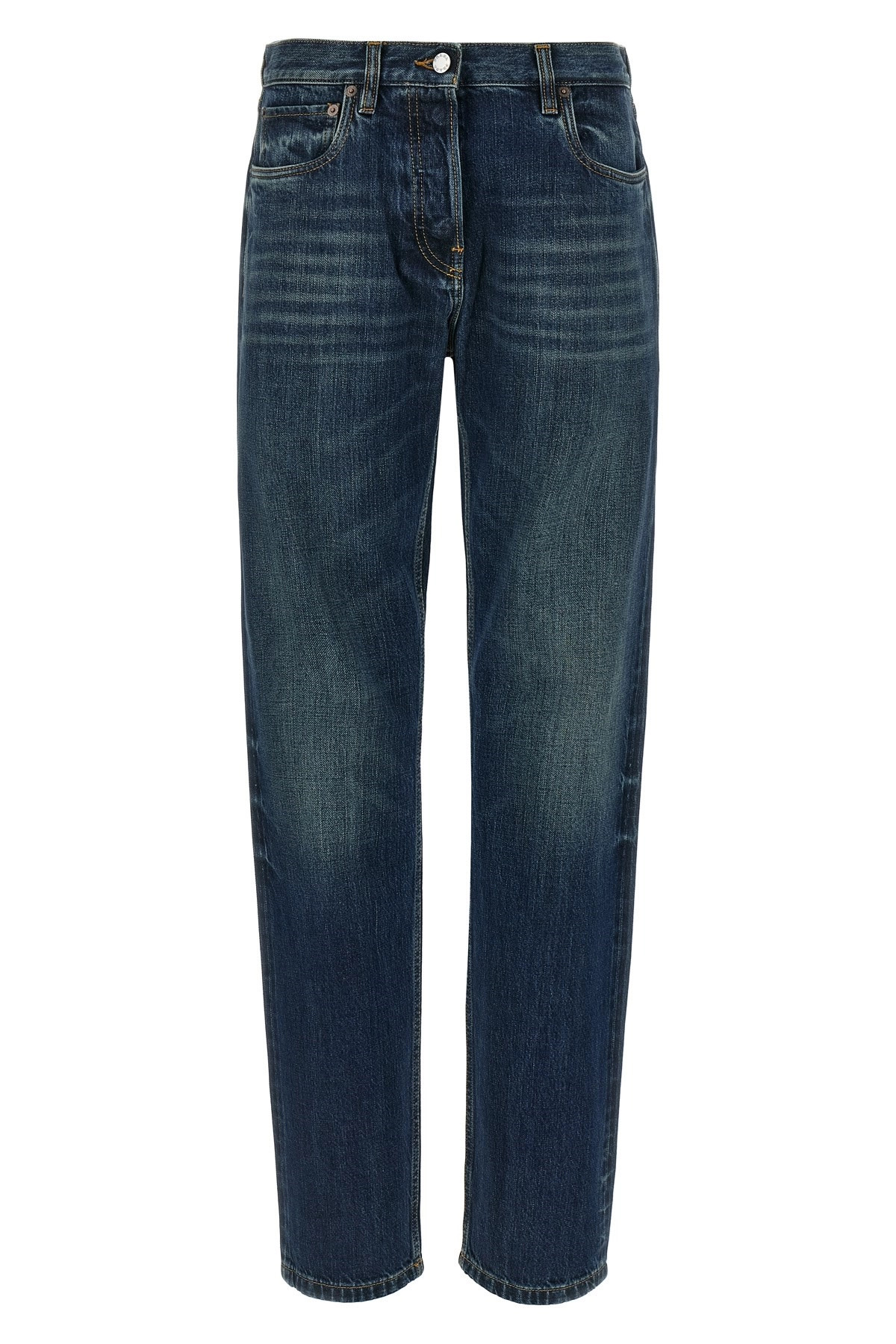 cod. GFP530SOOO164BF0008 Selvage Denim cotton denim jeans with trompe l'oeil heart detail and back logo tag, straight leg, front button closure, five pockets. Color: Blue Size & Fit: Slim fit Composition: 100% cotton Made in: Italy