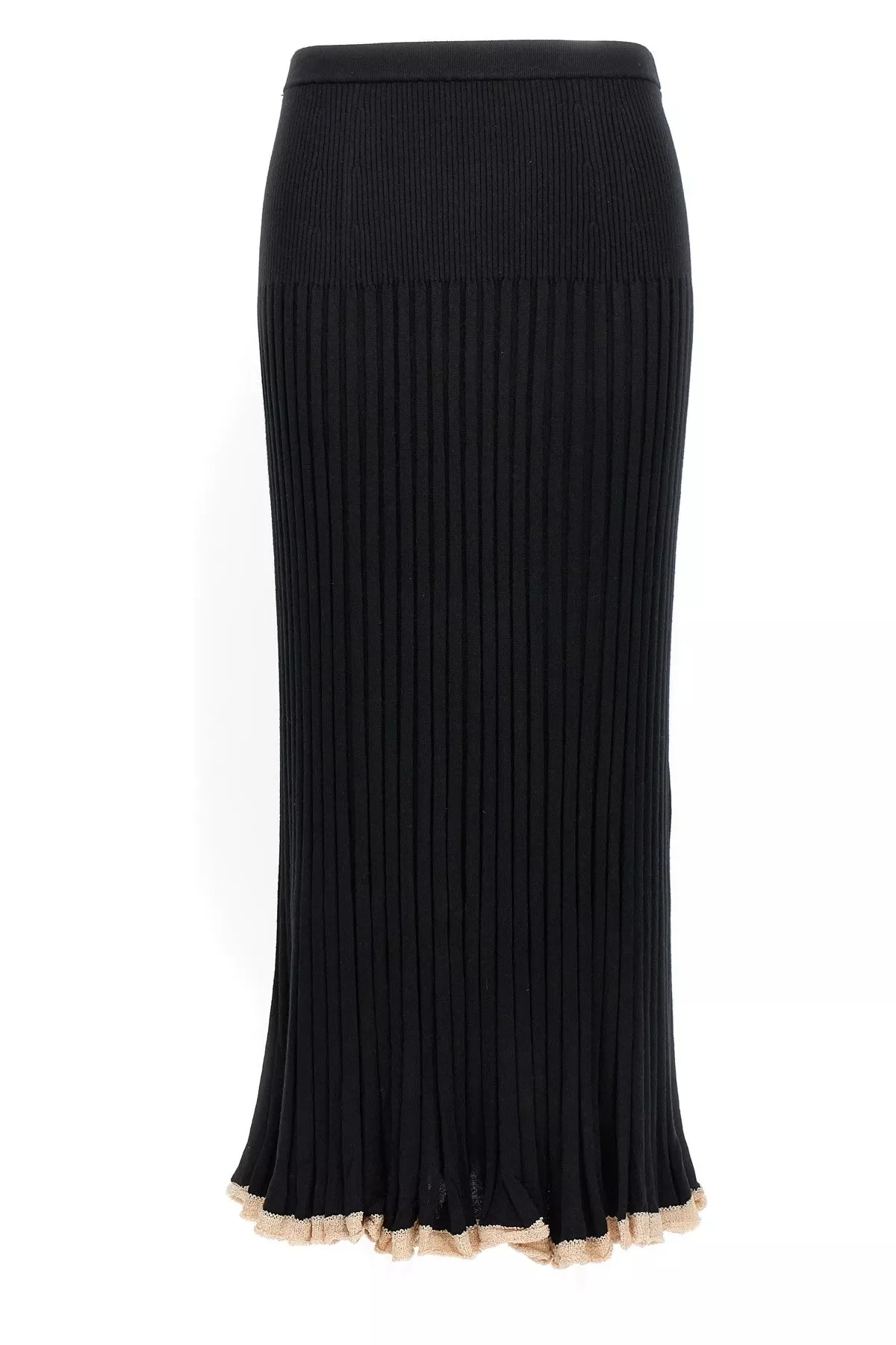 cod. R2337098001 Ribbed silk blend skirt with elastic waistband, and contrasting hem. Color: Black Size & Fit: true to size fit Composition: 85% silk, 15% cashmere Made in: China