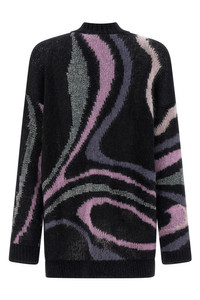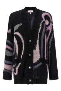 cod. 5UKQ815U967002 'Marmo' print mohair, viscose and wool blend cardigan, V-neck, front button closure, pockets, long sleeves with cuffs and dropped shoulders. This product, like many other Pucci items, is made with an all-over print that falls differently on each garment; The product shipped may differ from the one in the picture. Color: Black Size & Fit: oversized fit Composition: 67% mohair wool 27% polyamide 6% vi 5% wool Made in: Italy