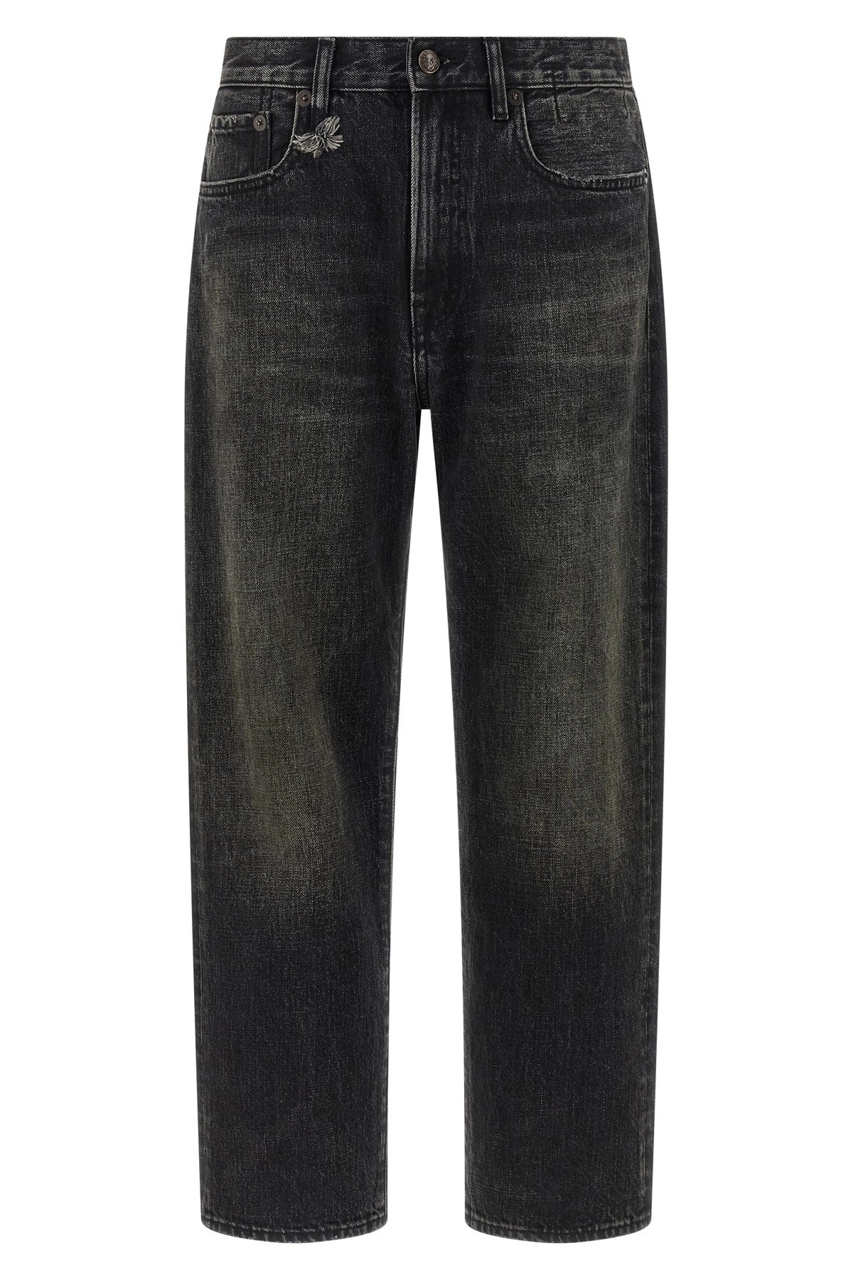 cod. R13W5083D352BASHBURYBLACK 'BF' used-effect stonewashed cotton denim jeans, front zip and button closure, five pockets, straight leg, back leather logo tag. Color: Black Size & Fit: true to size fit Composition: 100% cotton Made in: China