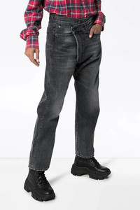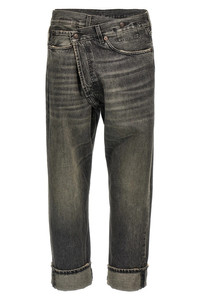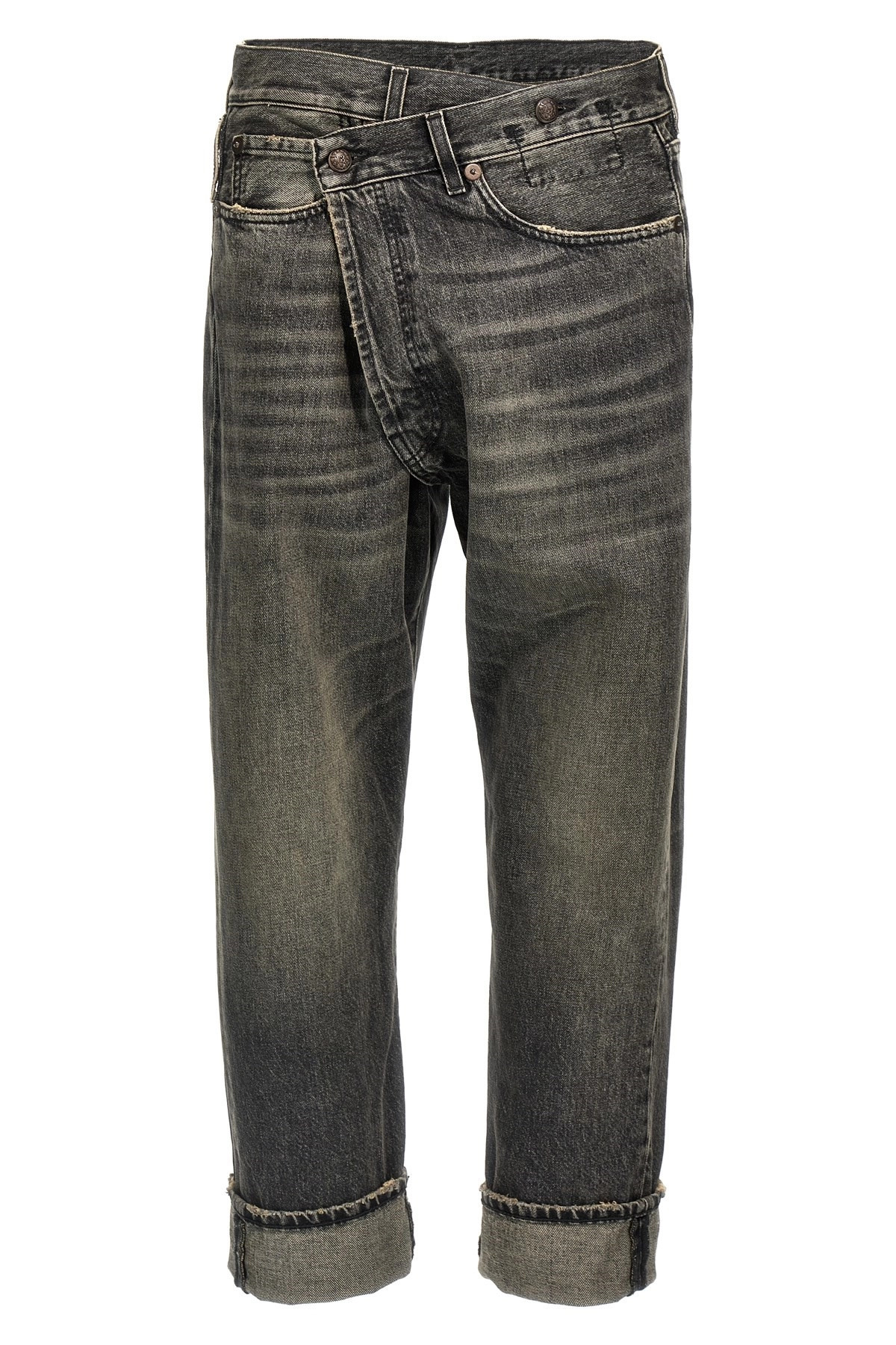 cod. R13W2048549ALEYTONBLACK 'Cross Over' jeans in delave cotton denim with asymmetric button closure, five pockets, leather logo tag, turn-up hem. Color: Gray Size & Fit: true to size fit Composition: 100% cotton Made in: Italy