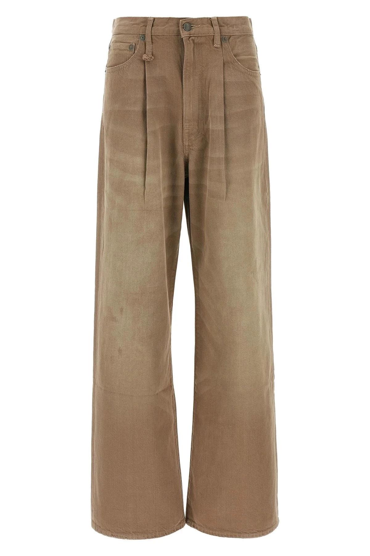 cod. R13W3147D326ASAWDUST High-waisted cotton denim Damon Pleated jeans with wide pleated leg, zip and button closure, five pockets, and back logo tag. Color: Brown Size & Fit: Comfort fit Composition: 100% cotton Made in: China