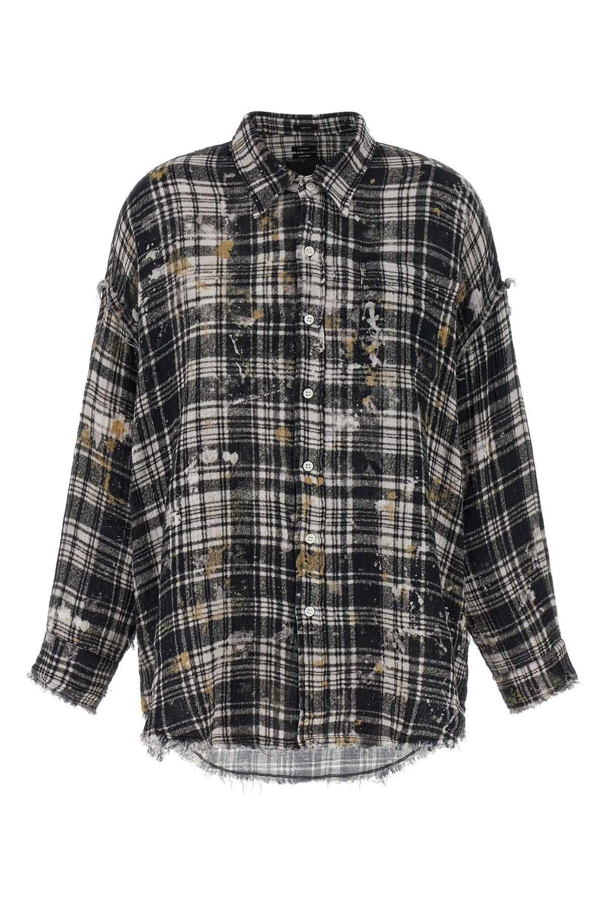 cod. R13WR075R557BBLACKPLAIDWITHSPLATTER Heavy printed cotton shirt, front button closure, breast pocket, long sleeves with cuffs and dropped shoulder, frayed hem, asymmetrical hem. Color: Multicolor Size & Fit: oversized fit Composition: 100% cotton Made in: Italy