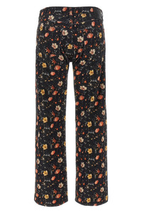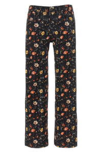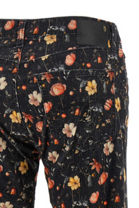 cod. R13WD200D366ALUNARPETALVELVETEENBLACK 'Joan Kick Flare' '' peach hand cotton jeans with 'Lunar Petal Velveteen' print, slightly flared straight leg, front zip and button closure, five pockets, back leather logo tag. Color: Multicolor Size & Fit: true to size fit Composition: 98% cotton 2% polyurethane Made in: Italy