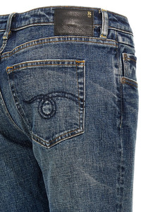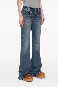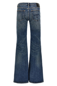cod. R13WD142D275AMIREBLUESTRETCH 'Overflow Boy Flare' low-rise denim jeans in delave cotton with flared leg, five pockets, zip and button closure, back logo tag. Color: Blue Size & Fit: true to size fit Composition: 100% cotton Made in: China