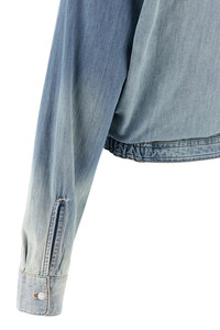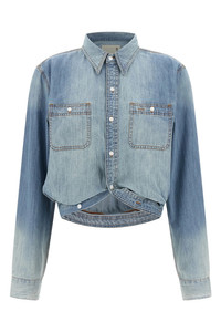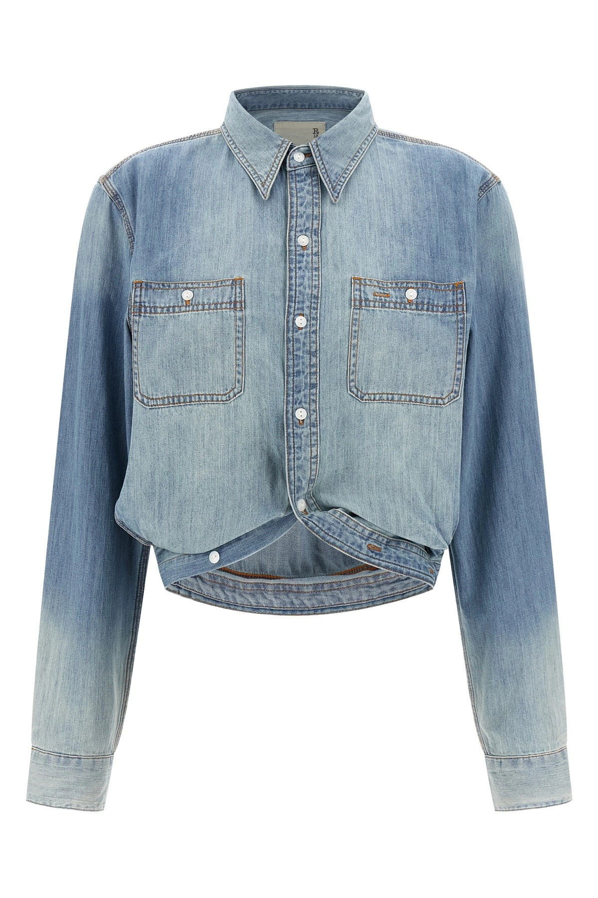 cod. R13WD185D351ARIVERBLUE 'Wrap Around' cotton denim shirt with side curls, front button closure, pockets, long cuffed sleeves, asymmetrical elastic hem. Color: Light Blue Size & Fit: true to size fit Composition: 100% cotton Made in: China