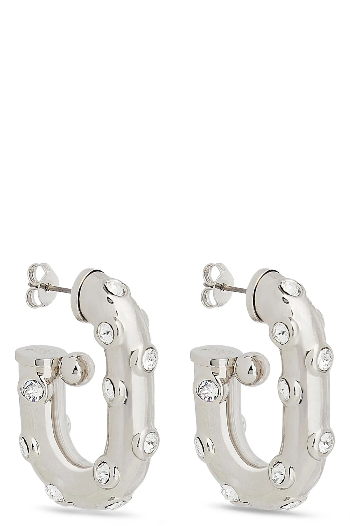 cod. 25HBB0216MET814M064 XL Link' metal earrings with crystal applique and pin closure. ITEM CANNOT BE RETURNED Color: Silver Composition: 90% brass, 10% glass Made in: Italy