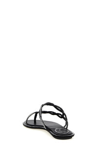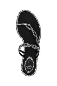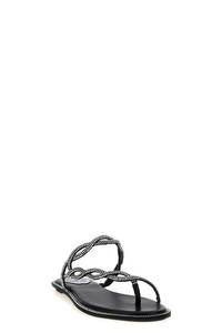 cod. C12482010R001V065V065 Braid' leather sandals with satin top and all-over rhinestone appliques, flat flip-flops style, rubber sole. Color: Black Size & Fit: EU WOMEN Composition: 100% satin Made in: Italy
