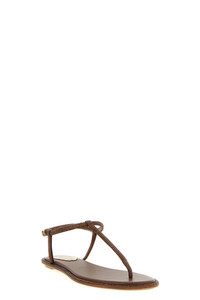 cod. C11574010R001X033 Diana' flat leather flip-flop sandals with all-over rhinestone appliques, adjustable leather straps, metallic leather insole and rubber sole. Color: Brown Size & Fit: EU WOMEN Composition: 68% viscose, 32% silk Made in: Italy