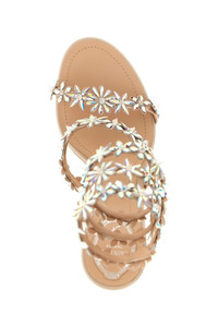 cod. C12691100RN01X323 Eva' leather sandals with suede applique and all-over floral crystals, ankle wrap band, stiletto heel, stardust sole. Color: Pink Size & Fit: EU WOMAN - Heels: 8 cm recommend to half a size up Composition: 68% viscose, 32% silk Made in: Italy