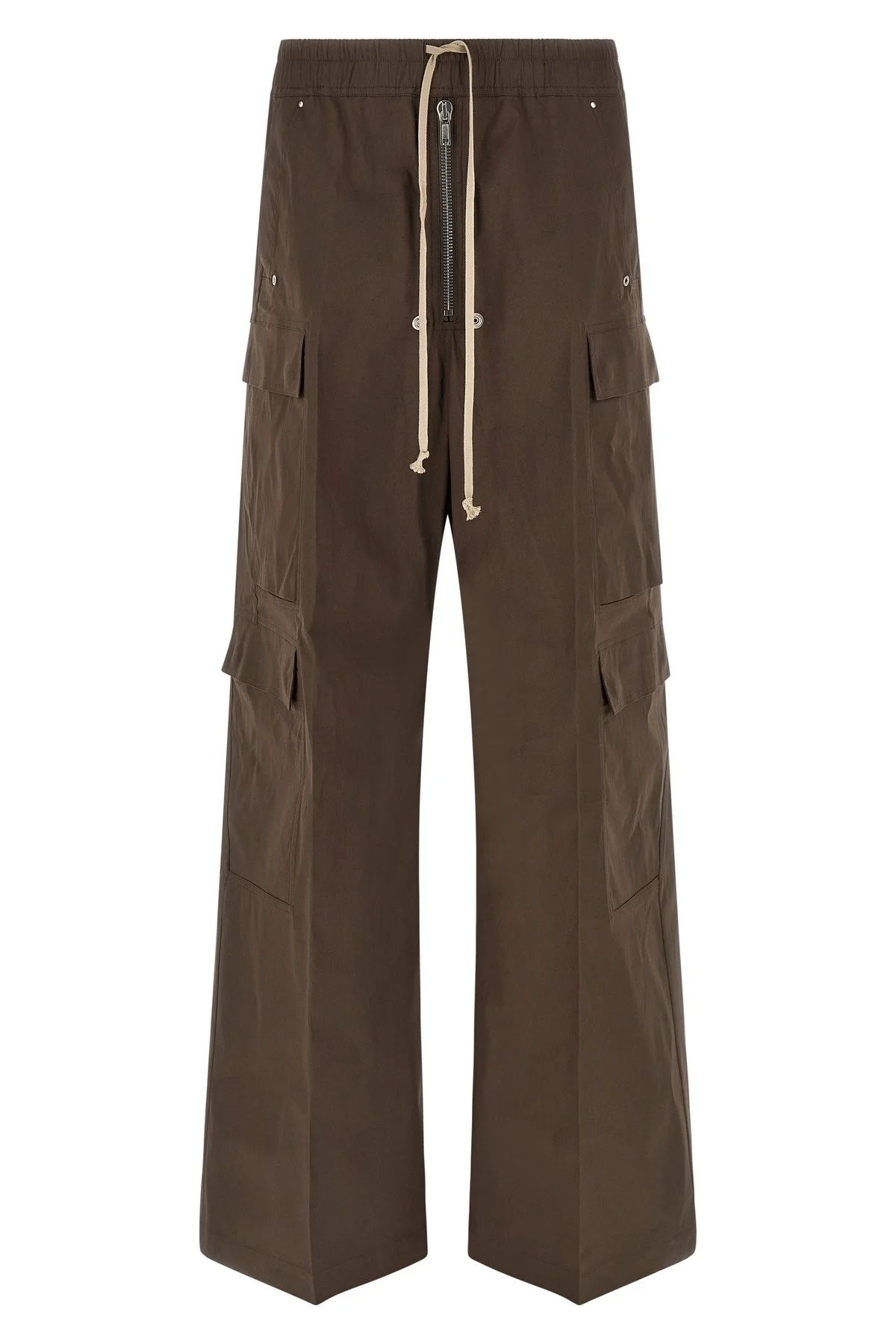 cod. RU01F2339TE78 'Cargobelas' pants in crisp medium hand cotton poplin weight, cargo model with low crotch and wide leg, elastic with adjustable drawstring at the waist, pockets, front zip closure. Color: Brown Size & Fit: true to size fit Composition: 97% cotton, 3% elastane Made in: Italy