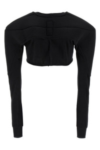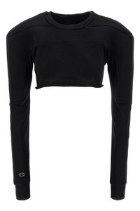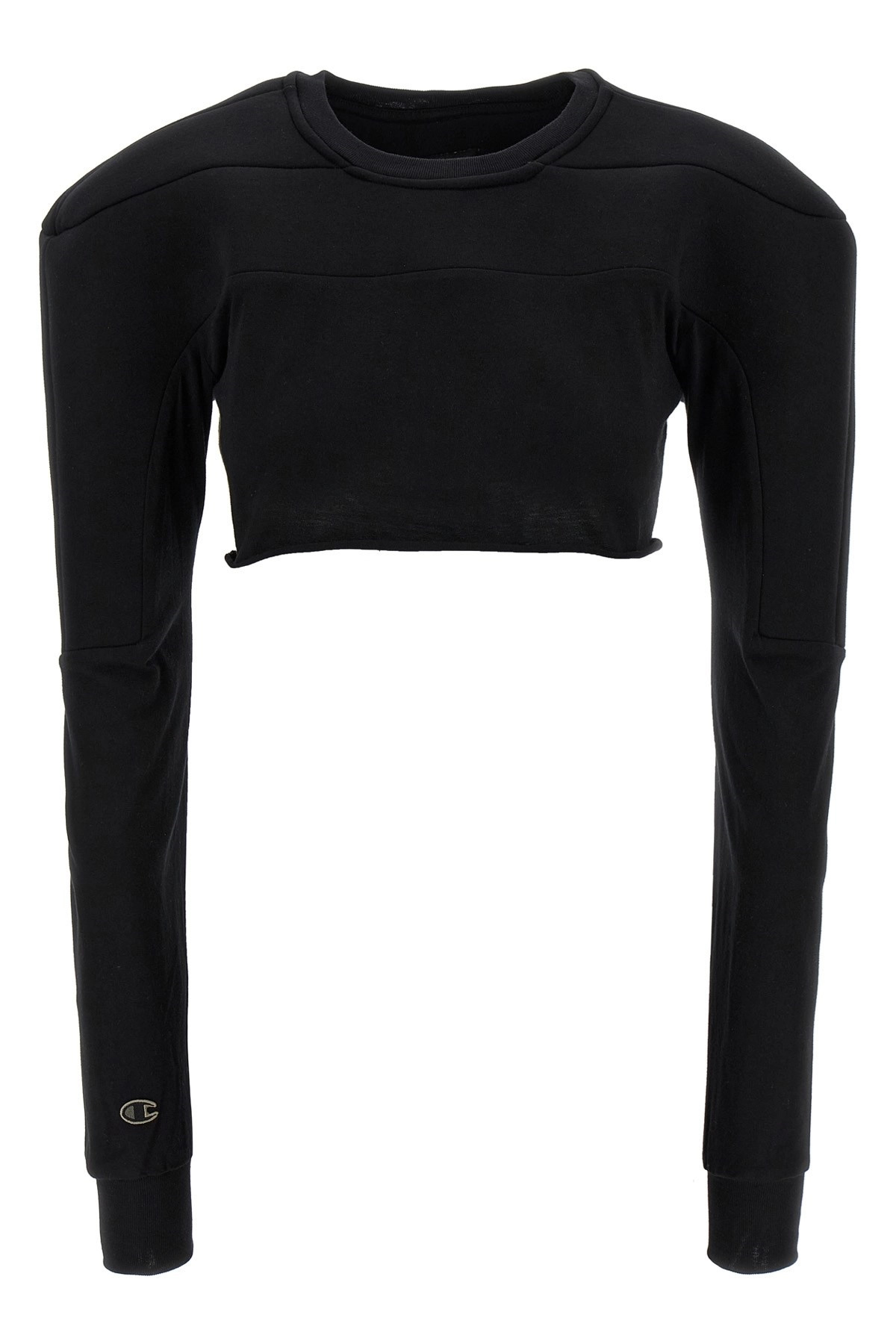 cod. CW01E1708CHJG09 Champion x Rick Owens cotton sweater with top inserts in scuba fabric, crop model, crew neck, long sleeves with cuffs, structured shoulder strap, garment with raw cut hem. SUSTAINABLE: This product is made of organic cotton. Color: Black Size & Fit: Comfort fit Composition: 100% cotton Made in: Italy