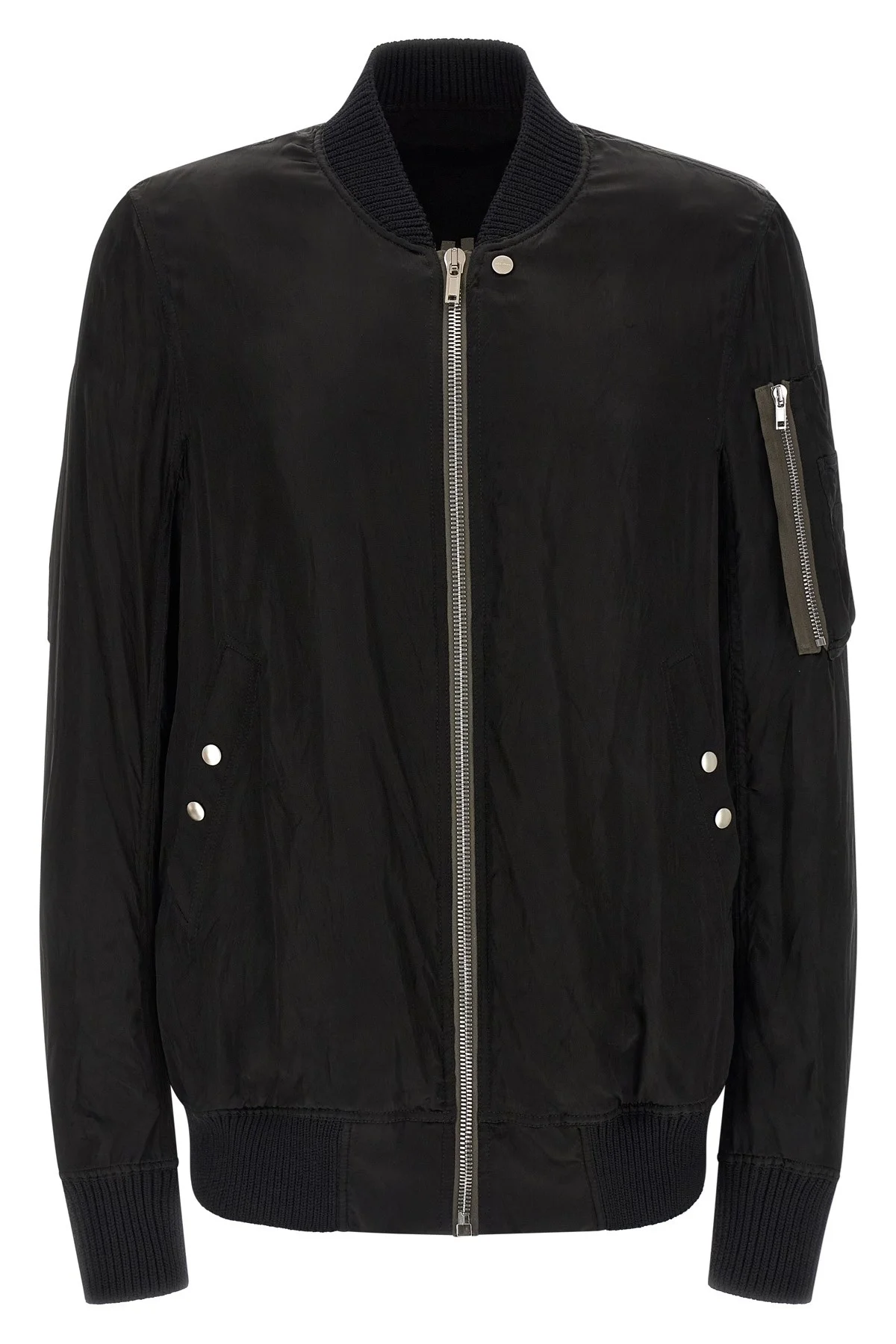 cod. RU01F2778N09 'Classic Flight' bomber jacket in slightly padded shiny nylon with ribbed knit details, front zip closure, pockets, long cuffed sleeves, and headband. Color: Black Size & Fit: true to size fit Composition: 100% cupro Made in: Italy