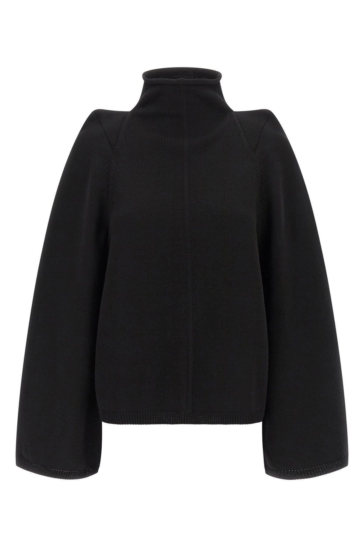cod. RO02E4657KWVLH09 Knitted wool 'Con Top' sweater, funnel collar, pointed shoulder, extra wide long sleeves. Color: Black Size & Fit: Boxy fit Composition: 100% wool Made in: Italy