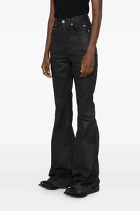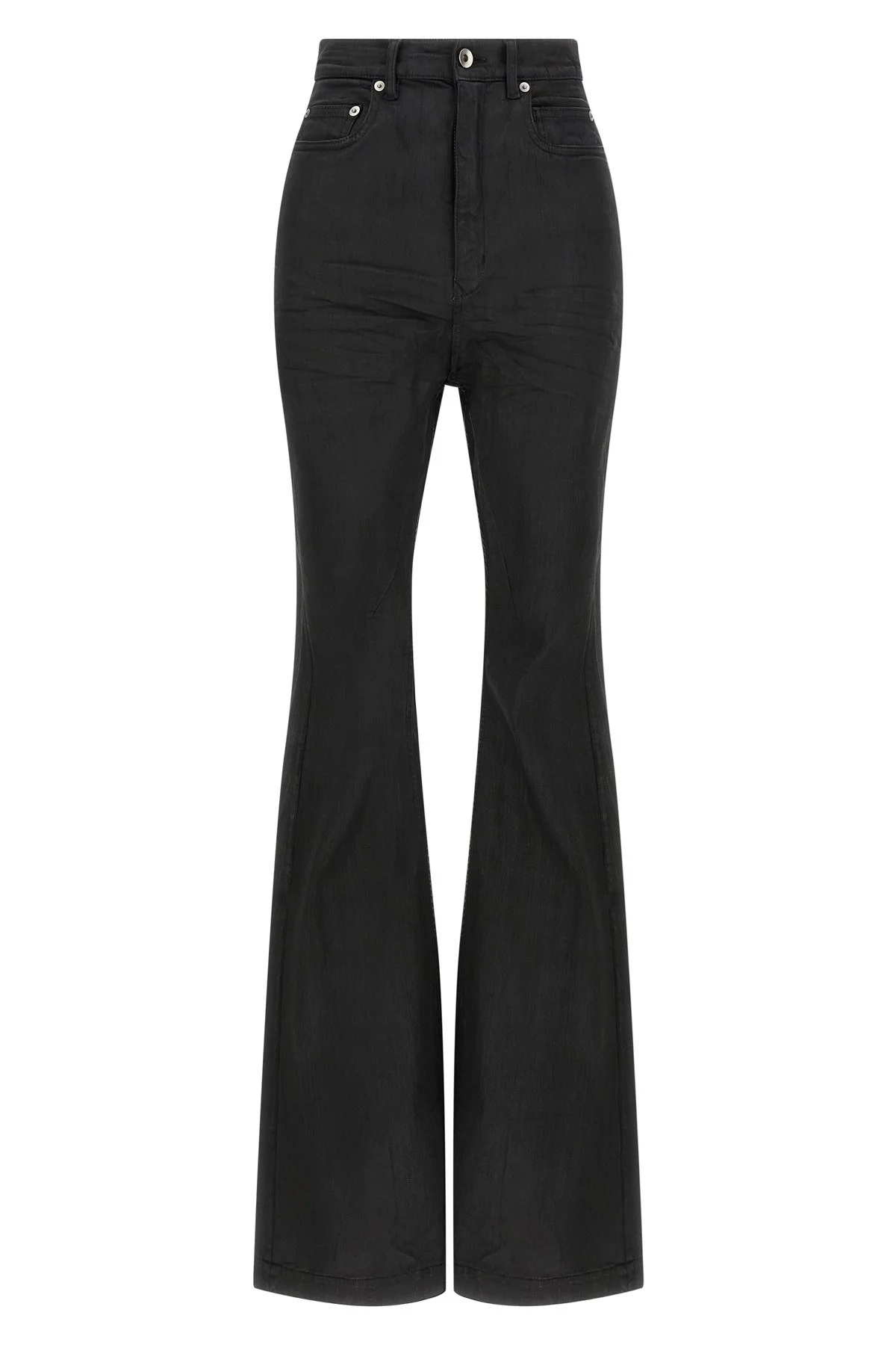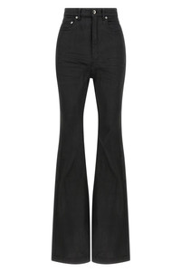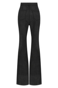 cod. DS02E7311SBW99X High-waisted stretch cotton denim Bolan Bootcut jeans with flared leg, five pockets, zip and front button closure. Since the foil, at the end of processing, is pressed over the garment to create a waxy touch, each piece will have a unique appearance and folds, as the foil will stick in different points depending on the garment. Color: Black Size & Fit: true to size fit Composition: 91% cotton 6% elastane 3% ru Made in: Italy
