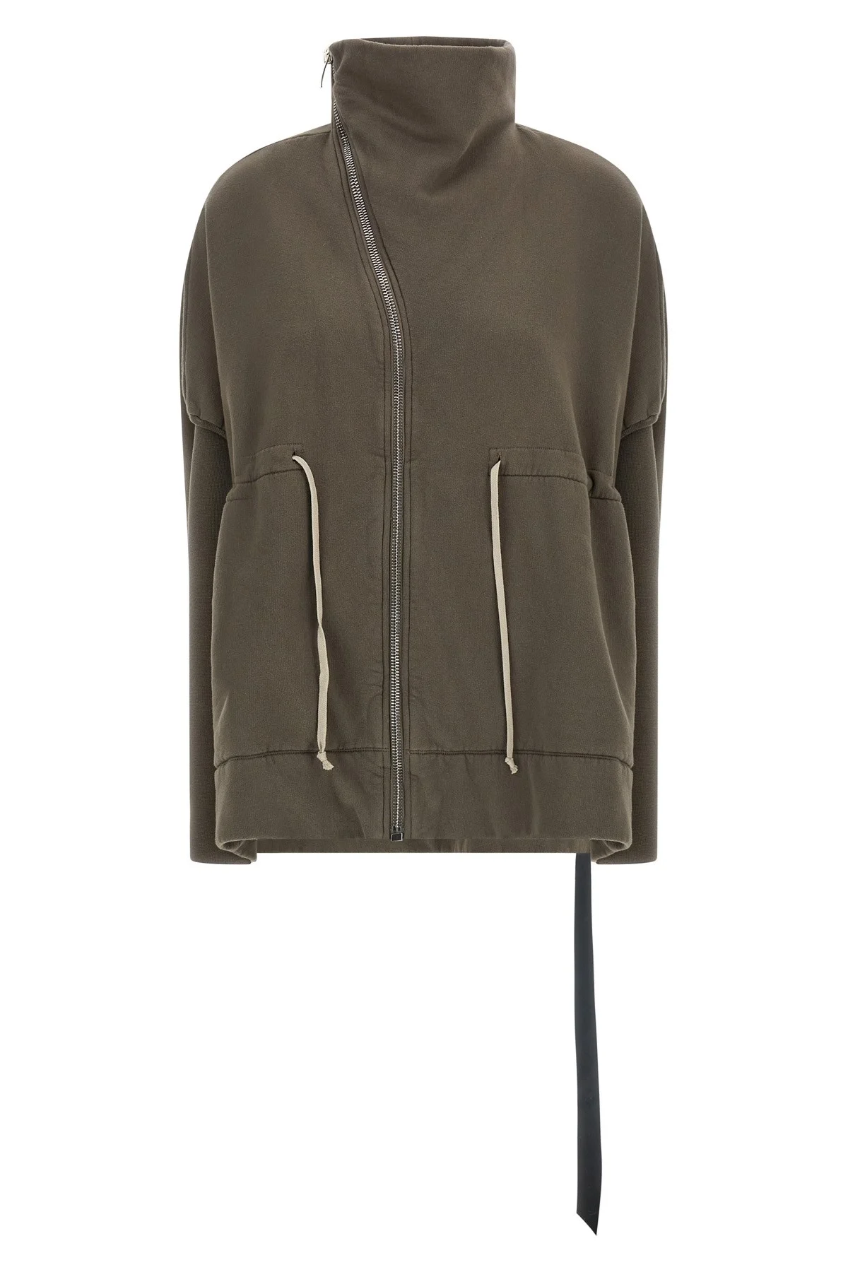 cod. DS01F4210F34 Mountain Sail' fleece cotton sweatshirt, high neck, front asymmetrical zip closure, drawstring at the waist, pockets, long honeycomb cotton sleeves with dropped shoulders and raw cut cuffs. Color: Beige Size & Fit: oversized fit Composition: 100% cotton Made in: Italy