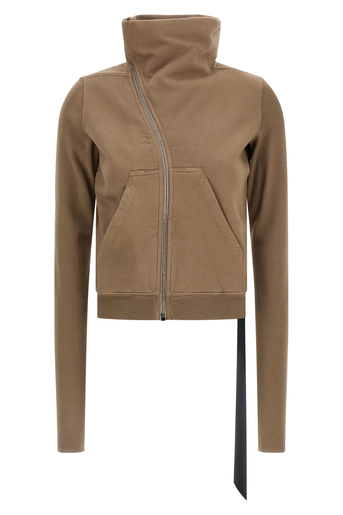 cod. DS01F4239F64 'Mountain Sweat' cropped cotton fleece sweatshirt, foldable high neck, front asymmetrical zip closure, pockets, long honeycomb cotton sleeves with raw cut sleeves and headband. Color: Beige Size & Fit: true to size fit Composition: 100% cotton Made in: Italy