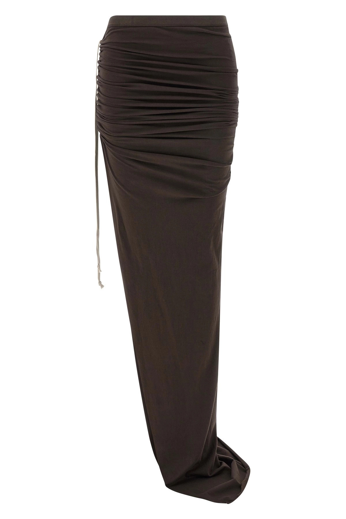 cod. DS02E7337RN78 'Soft Edfu' cotton jersey maxi skirt with elastic waistband, side split with drawstring to adjust the curl. Color: Brown Size & Fit: true to size fit Composition: 100% cotton Made in: Italy