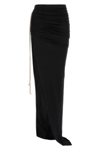 cod. DS02E7337RN09 'Soft Edfu' cotton jersey maxi skirt with elastic waistband, side split with drawstring to adjust the curl. Color: Black Size & Fit: true to size fit Composition: 100% cotton Made in: Italy