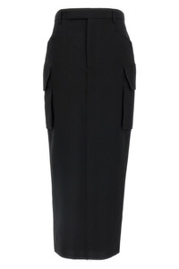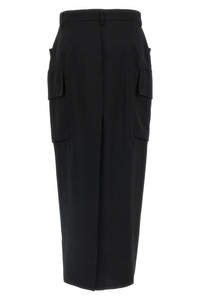 cod. RP02E4379WGP09 'Firebanks' wool midi skirt, cupro lining, cargo style with side pockets, zip hook and front button closure, pockets, wide back split. Color: Black Size & Fit: true to size fit Composition: 100% wool Made in: Italy
