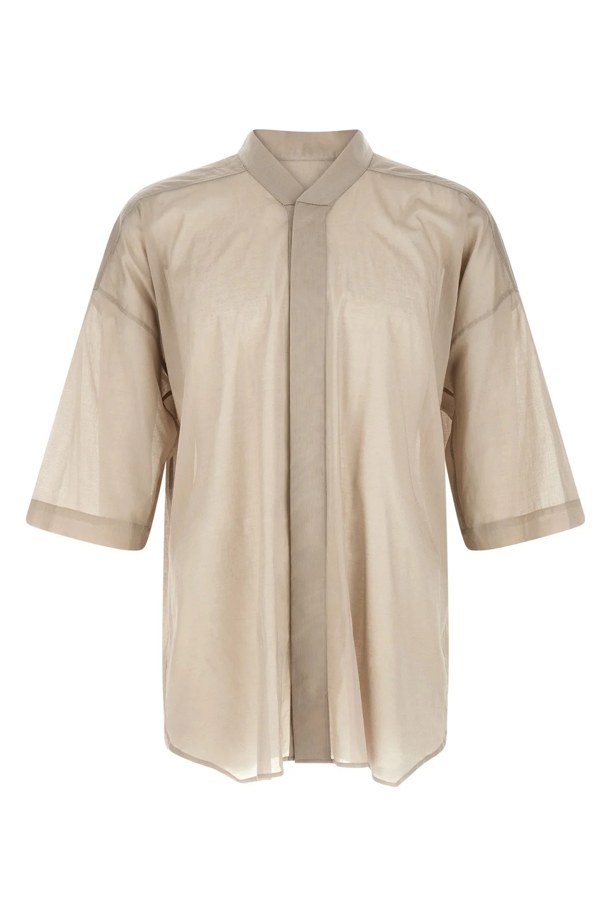 cod. RU01F2238CV08 'Jumbo Faun' semi-transparent cotton voile shirt, high neck, front snap button closure, wide short sleeves with dropped shoulders. Color: Gray Size & Fit: oversized boxy fit Composition: 100% cotton Made in: Italy