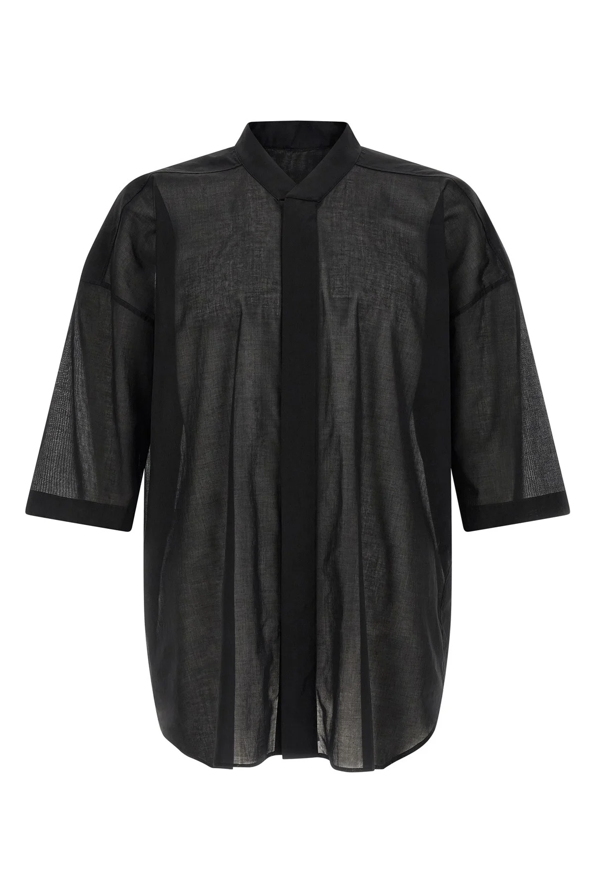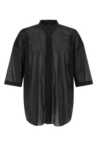 cod. RU01F2238CV09 'Jumbo Faun' semi-transparent cotton voile shirt, high neck, front snap button closure, wide short sleeves with dropped shoulders. Color: Black Size & Fit: oversized boxy fit Composition: 100% cotton Made in: Italy
