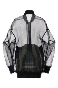 cod. RP01E7737TU09 'Jumbo flight' semi-transparent tulle bomber jacket with knitted edges and cuffs, metal front zip, metal details, pockets. Color: Black Size & Fit: True to size fit Composition: 100% nylon Made in: Italy