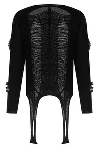 cod. RR01E5671KGRIDM09 'LS Top' wool sweater with fraying and cut-out details on the front and back, boat neck, long sleeves, raw cut hem. Color: Black Size & Fit: true to size fit Composition: 100% wool Made in: Italy
