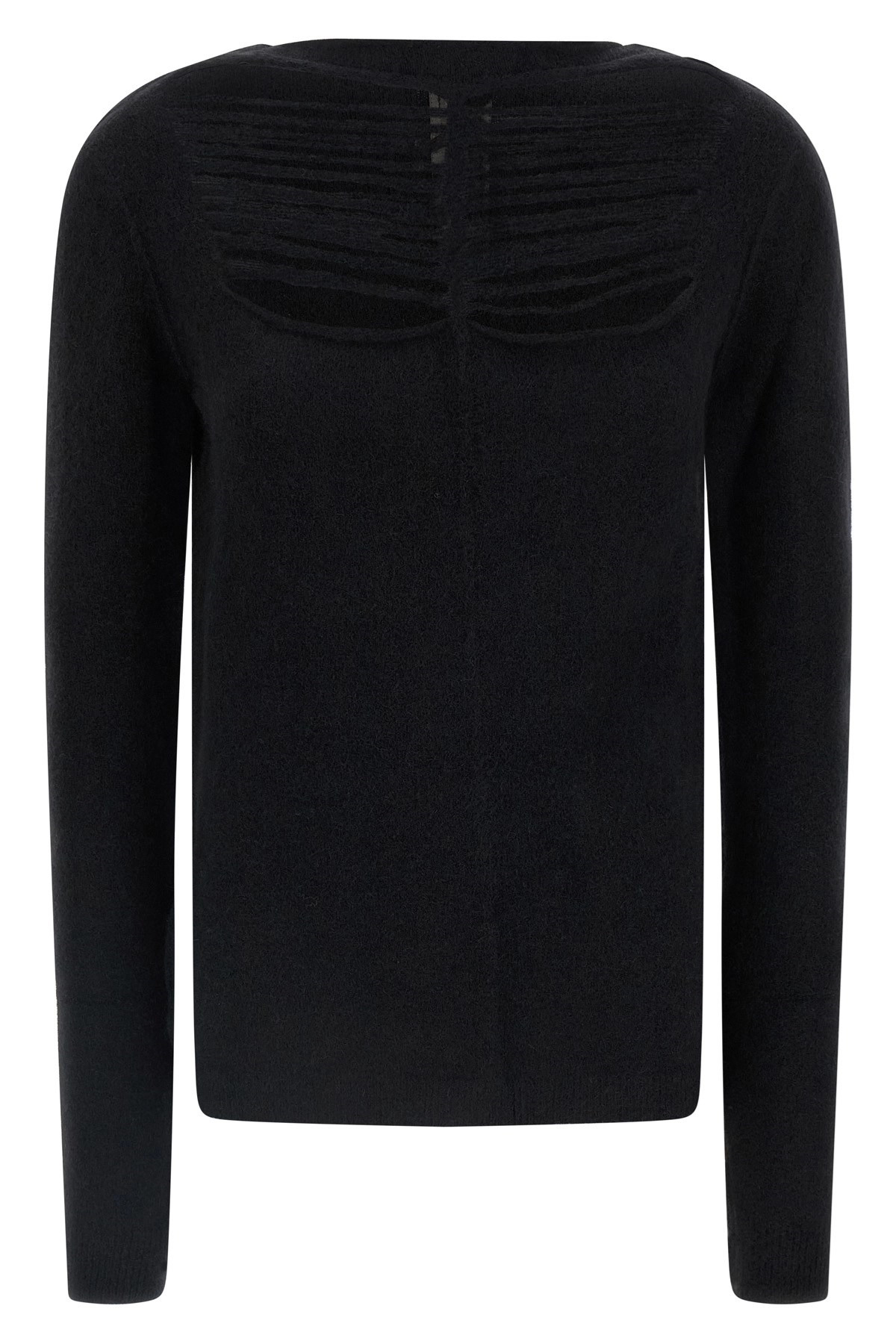 cod. RP02E4601KGRIDP09 'LS Top' wool sweater with boat neck, front cut-out details, long sleeves. Color: Black Size & Fit: True to size fit Composition: 87% wool 10% nylon 3% elastane Made in: Italy