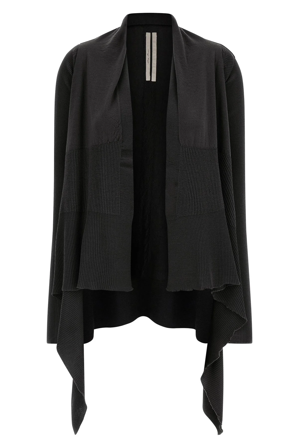 cod. RP01F6642M09 'Medium Wrap' wool knit cardigan with no closure, asymmetric length, long sleeves. Color: Black Size & Fit: True to size fit Composition: 100% wool Made in: Italy
