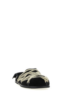 cod. RU02E1813LVSW109 'Megalace Mule Granola' suede mules with front lace detail, adjustable strap with velcro, rubber sole. Color: Black Size & Fit: EU MEN Composition: 100% calfskin leather (Bos Taurus) Made in: Italy