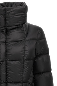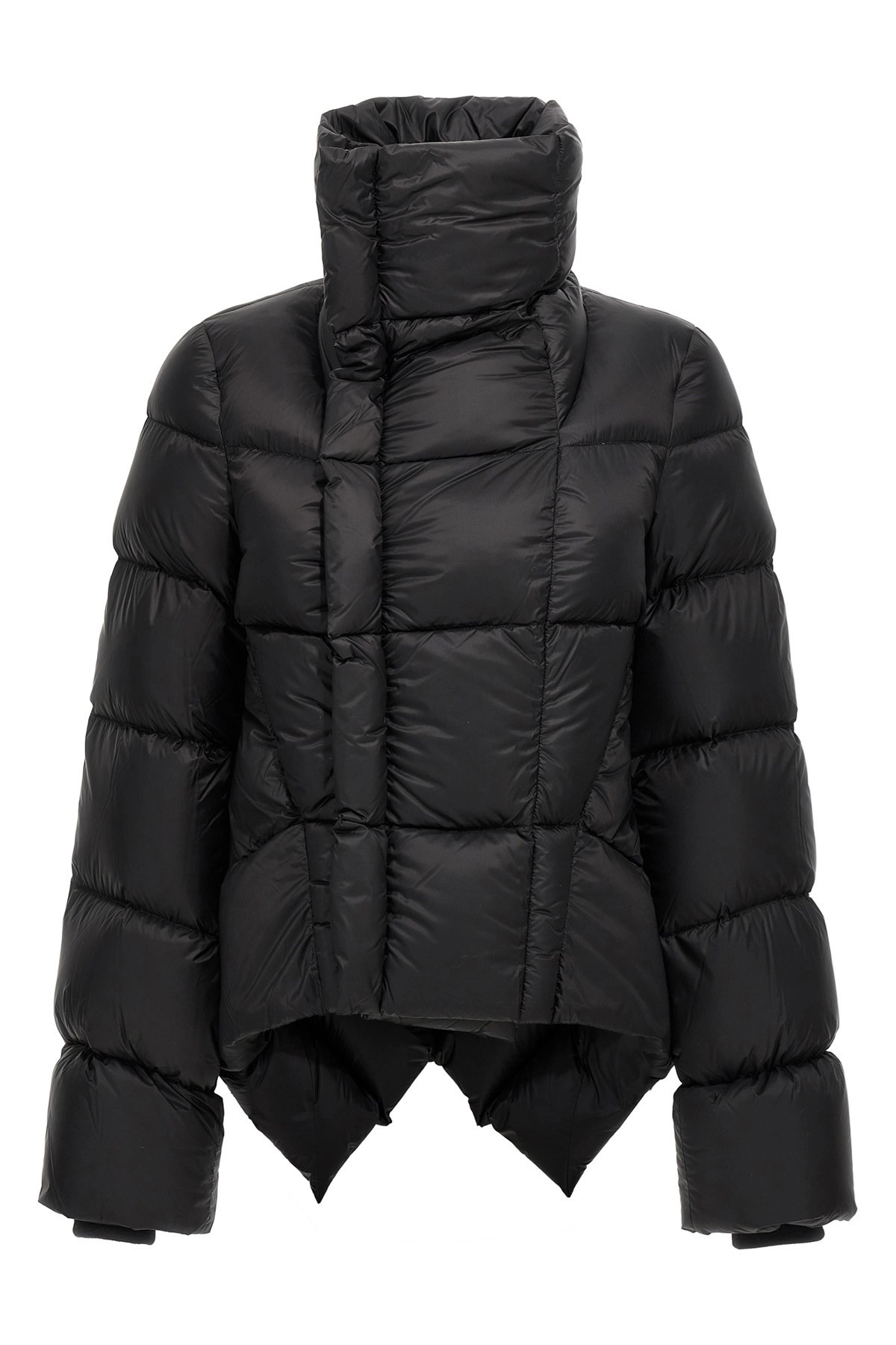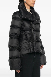cod. RP02E4746NPD309 'Naska Duvet' nylon down jacket with goose feather padding, high neck, zip closure, asymmetrical hem, long sleeves with knitted cuffs. Color: Black Size & Fit: true to size fit Composition: 100% lamb leather (Ovis aries) Made in: Italy