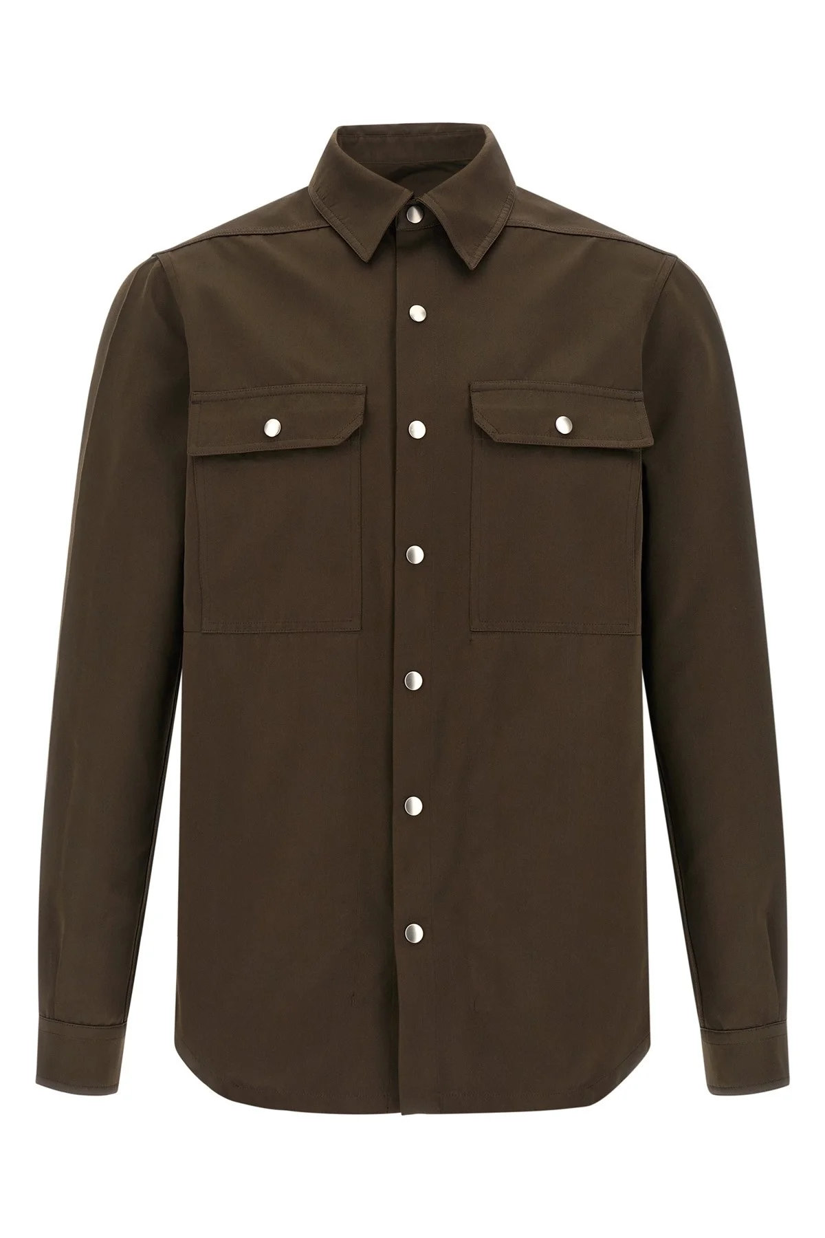 cod. RU01F2729THD78 'Outershirt' satin-effect technical fabric shirt with front snap button closure, pockets, long cuffed sleeves, tone-on-tone cotton tape detail at the back. Color: Brown Size & Fit: true to size fit Composition: 100% polyester Made in: Italy