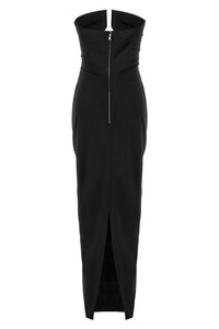 cod. RP01F6528SY09 Long 'Prong Gown' off-the-shoulder wool dress with front cut out and a battened neckline, zip closure and back split. Color: Black Size & Fit: True to size fit Composition: 60% viscose 36% acetate 4% elastane Made in: Italy