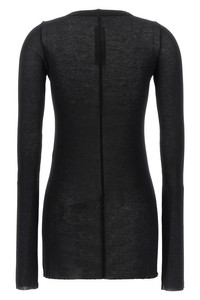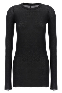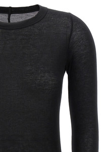 cod. RP01F6202RC09 'Rib LS T' ribbed viscose and stretch silk blend t-shirt, raw cut hem, crew neck, long sleeves. Color: Black Size & Fit: Slim fit Composition: 88% viscose, 12% silk Made in: Italy