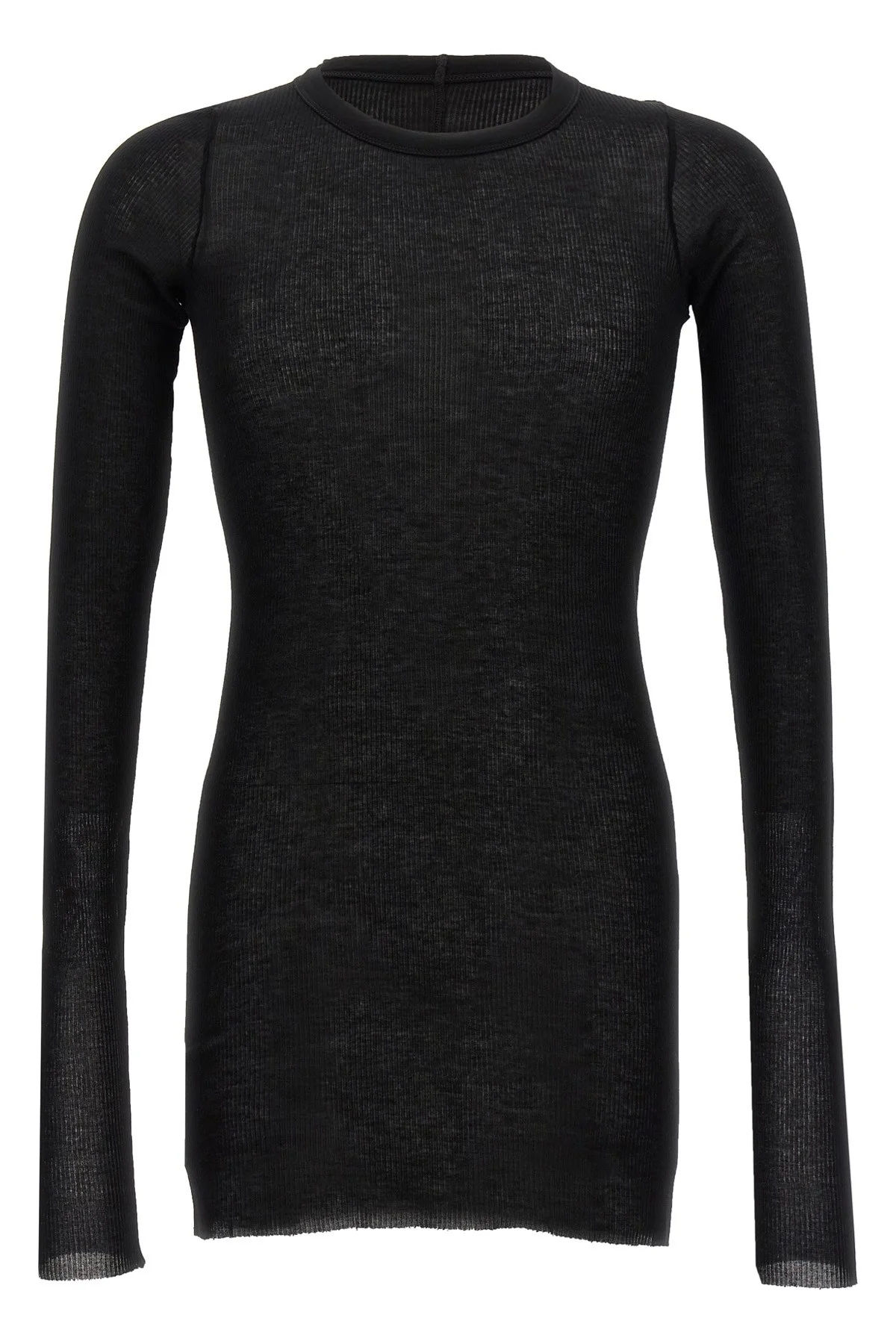 cod. RU01F2250RC09 'Rib LS T' ribbed viscose and stretch silk blend t-shirt, raw cut hem, crew neck, long sleeves. Color: Black Size & Fit: Slim fit Composition: 88% viscose, 12% silk Made in: Italy