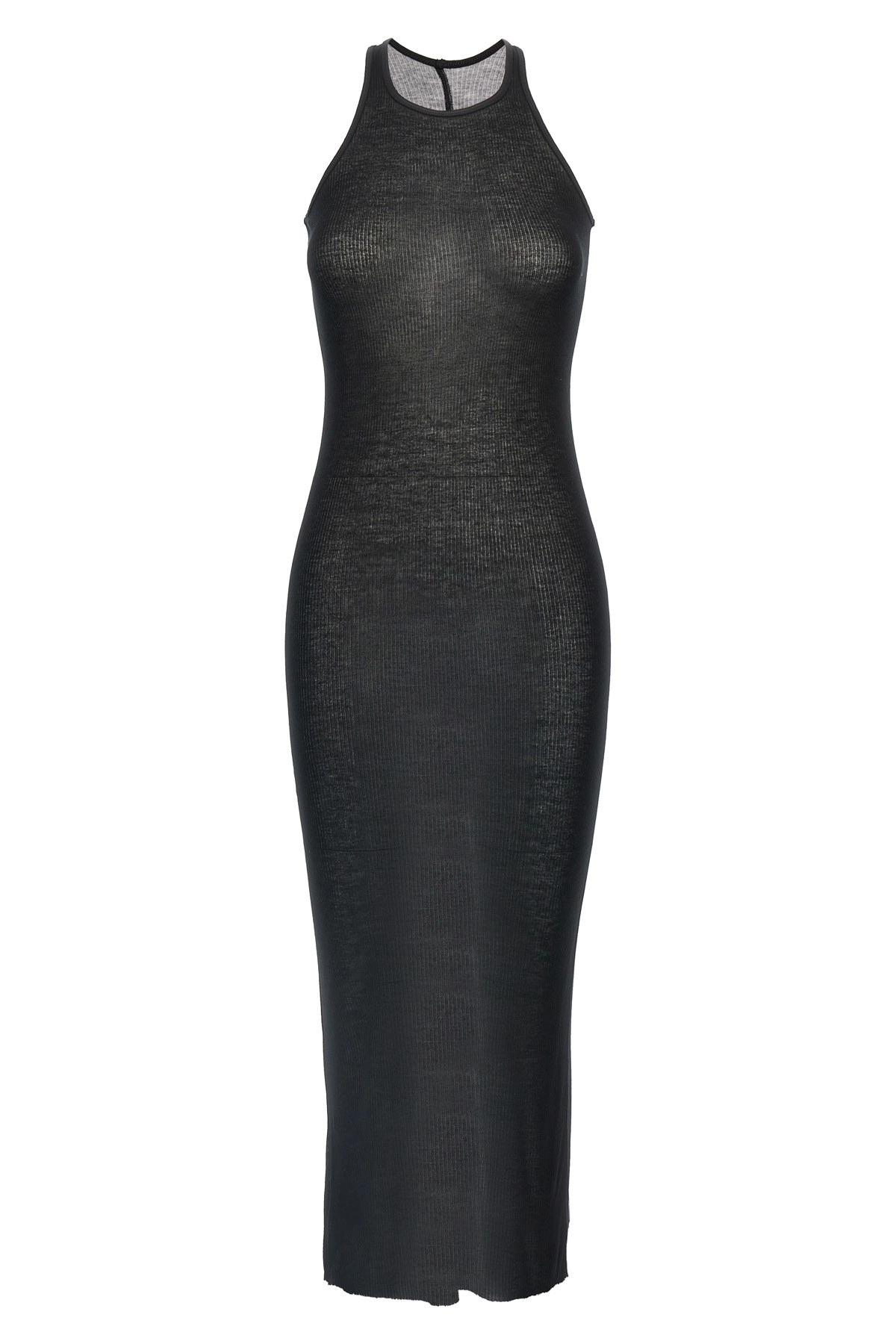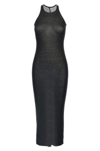 cod. RP01E7549RC09 Ribbed viscose and silk blend dress, sleeveless, crew neck. Color: Black Size & Fit: true to size fit Composition: 88% viscose, 12% silk Made in: Italy