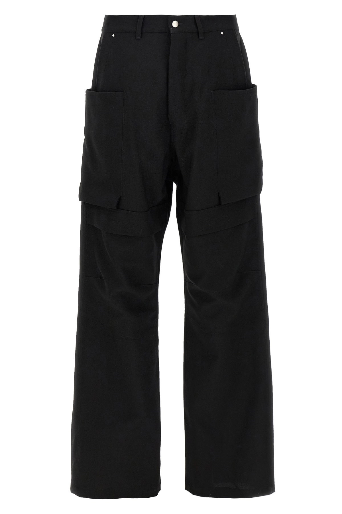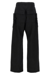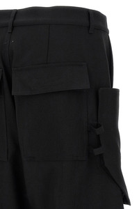 cod. RU02E1346WGP09 Stefan Cargo' virgin wool trousers, side cargo pockets, low crotch model, front button closure, wide and straight leg, pockets. Color: Black Size & Fit: true to size fit Composition: 100% virgin wool Made in: Italy
