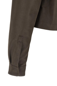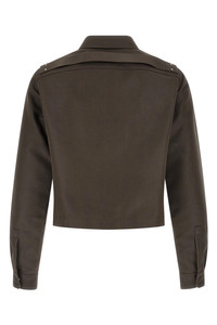cod. RU01F2742CDU78 'Tour Alice' rigid cotton blend shirt with crop style, front snap button closure, pockets, long cuffed sleeves, tone-on-tone cotton webbing detail at the back. Color: Brown Size & Fit: Comfort fit Composition: 62% cotton 38% nylon Made in: Italy