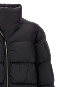 cod. RU02E1791NPD309 Long 'Turtle' quilted nylon down jacket with goose down padding, standing collar, asymmetrical front zip closure, pockets, long sleeves with stretch knit cuffs, cotton strap with rivets on the back rack. Color: Black Size & Fit: Comfort fit Composition: 100% nylon Made in: Italy