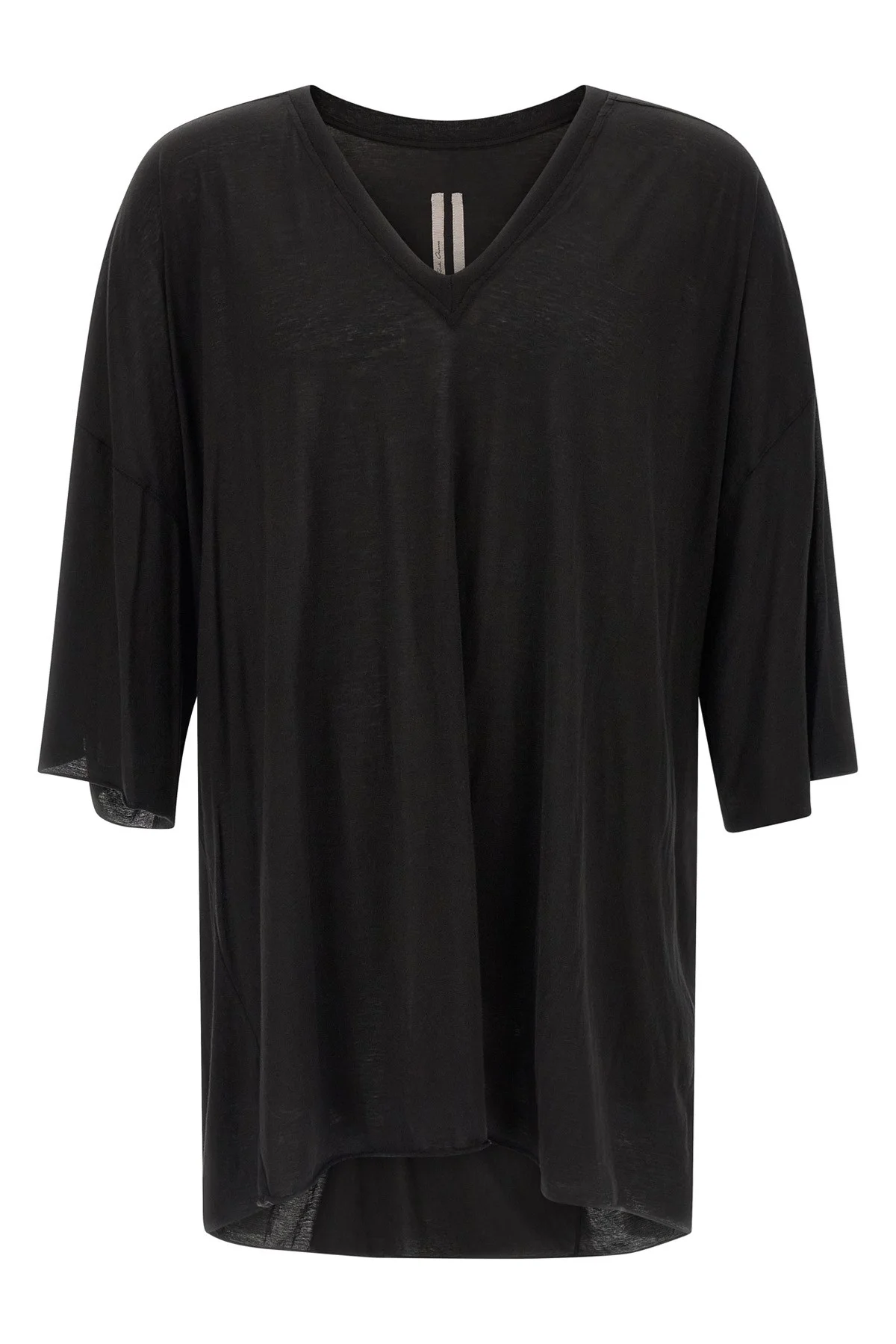 cod. RR01F2279BH09 'V Tommy T' garment-dyed semi-transparent cotton gauze jersey t-shirt, wide V-neck, short sleeves with dropped shoulders, raw cut hem. SUSTAINABLE: This product is made with organic cotton. Color: Black Size & Fit: oversized jumbo fit Composition: 100% cotton Made in: Italy