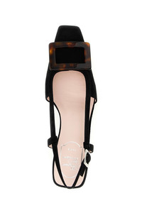 cod. RVW00643380HR0B999 'Belle Viver' suede slingbacks, square toe with tortoiseshell acetate buckle, adjustable strap, Skyscraper heel, leather sole. Color: Black Size & Fit: EU WOMAN - Heels: 4.5 cm Composition: 100% goat leather (Capra Hircus Hircus) Made in: Italy